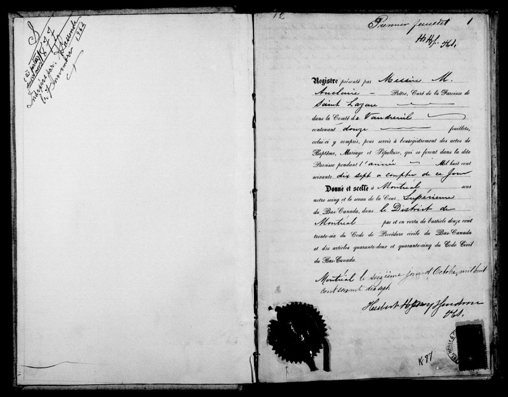 Saint-Lazare, 1877-1921, Archives nationales à Montréal, Fonds Cour supérieure. District judiciaire de Beauharnois. État civil, (06M,CE607,S9).