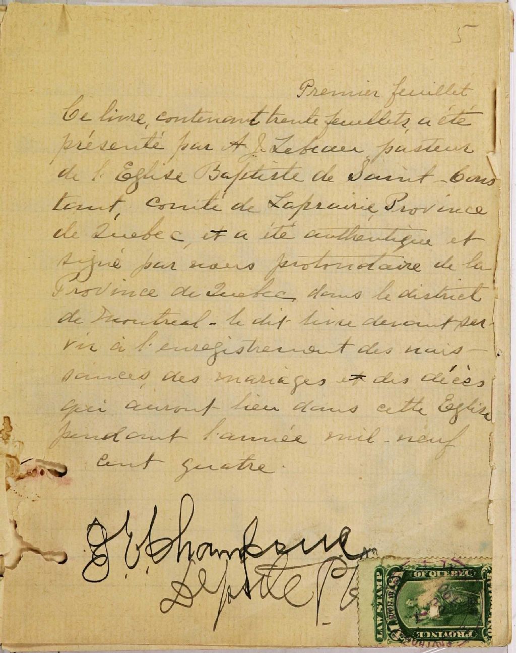 Saint-Constant Baptist Church, 1904-1921, Archives nationales à Montréal, Fonds Cour supérieure. District judiciaire de Longueuil. État civil, (06M,CE608,S1).