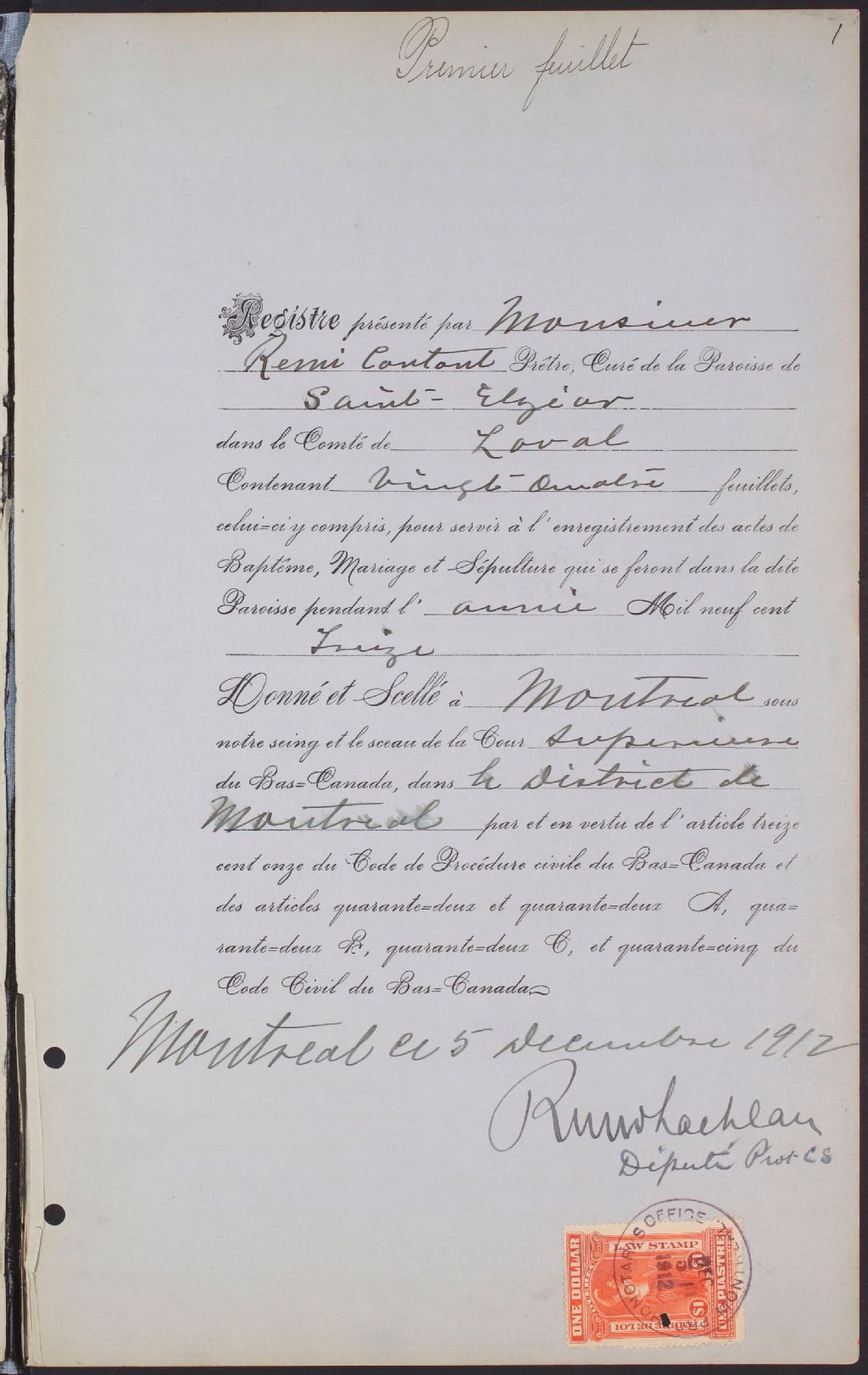 Saint-Elzéar-de-Laval, 1900-1921, Archives nationales à Montréal, Fonds Cour supérieure. District judiciaire de Laval. État civil, (06M,CE609,S2).