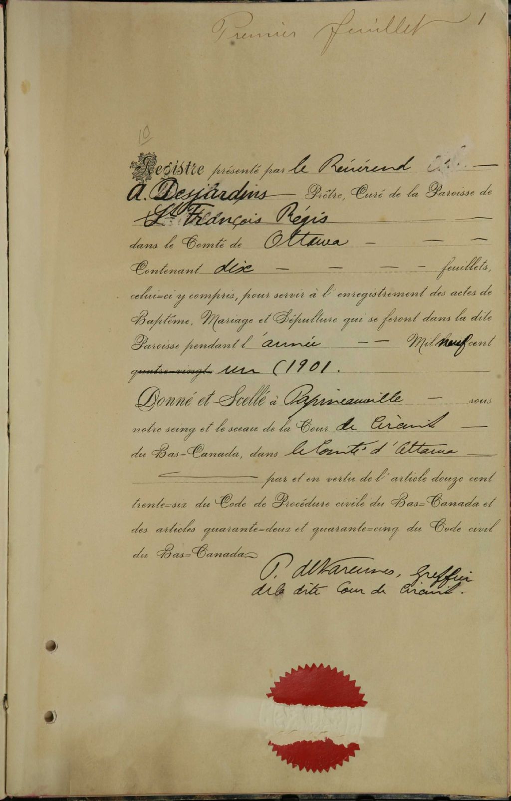 Saint-François-Régis, 1901-1921, Archives nationales à Montréal, Fonds Cour supérieure. District judiciaire de Labelle. État civil, (06M,CE610,S13).