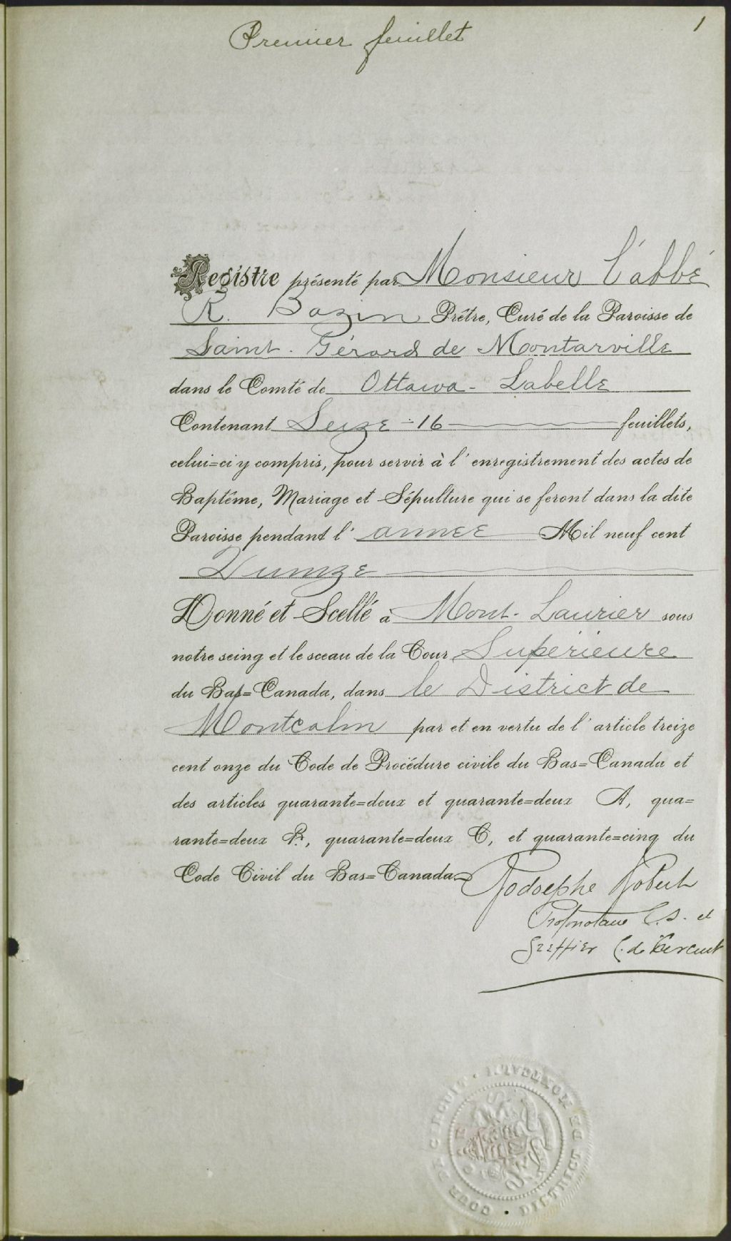 Saint-Gérard-Magella, 1901-1921, Archives nationales à Montréal, Fonds Cour supérieure. District judiciaire de Labelle. État civil, (06M,CE610,S14).
