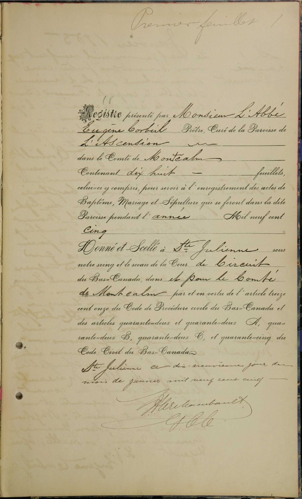 L'Ascension, 1902-1921, Archives nationales à Montréal, Fonds Cour supérieure. District judiciaire de Labelle. État civil, (06M,CE610,S16).