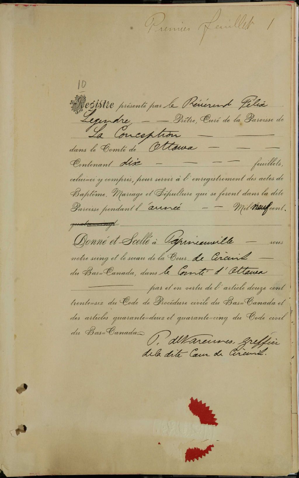 L'Immaculée-Conception-de-la-Bienheureuse-Vierge-Marie, 1900-1921, Archives nationales à Montréal, Fonds Cour supérieure. District judiciaire de Labelle. État civil, (06M,CE610,S19).