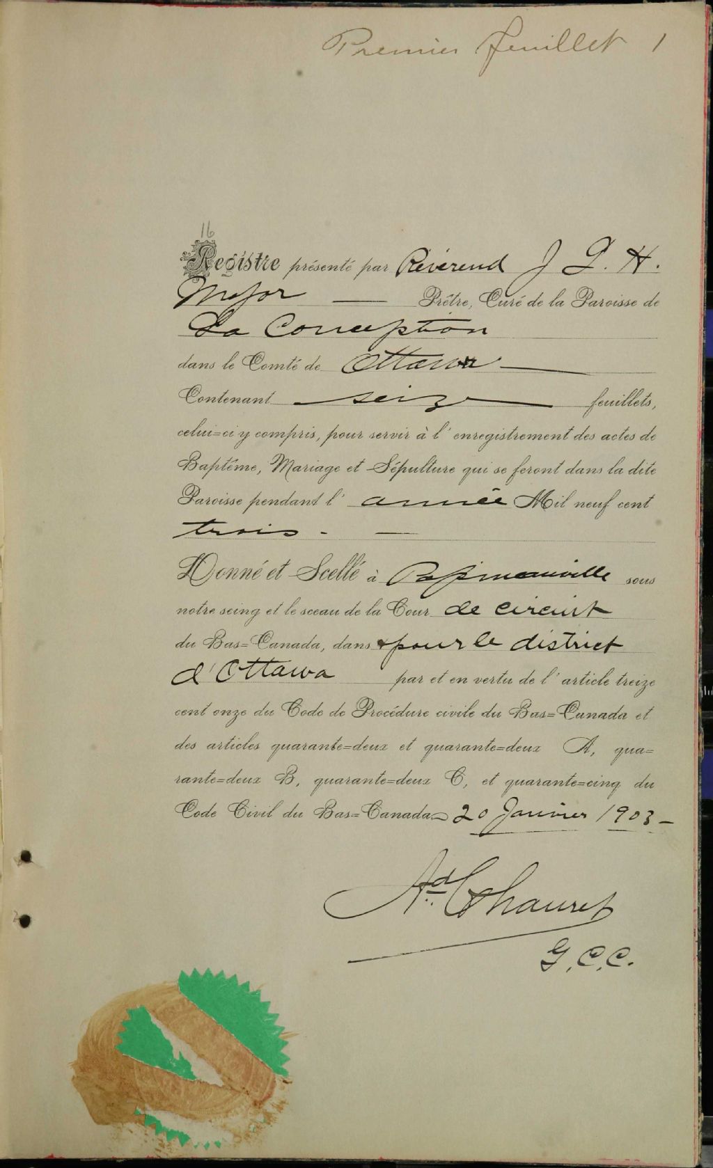 L'Immaculée-Conception-de-la-Bienheureuse-Vierge-Marie, 1900-1921, Archives nationales à Montréal, Fonds Cour supérieure. District judiciaire de Labelle. État civil, (06M,CE610,S19).