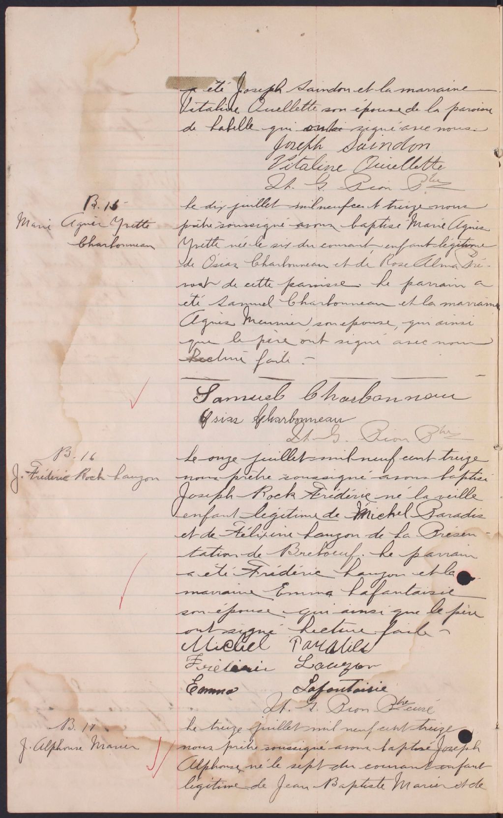 L'Immaculée-Conception-de-la-Bienheureuse-Vierge-Marie, 1900-1921, Archives nationales à Montréal, Fonds Cour supérieure. District judiciaire de Labelle. État civil, (06M,CE610,S19).