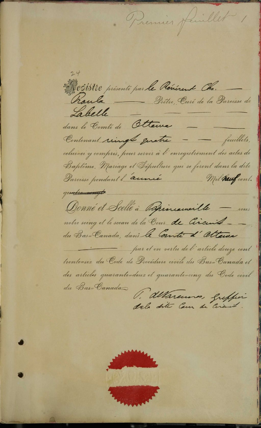 La Nativité-de-Marie-de-Labelle, 1899-1921, Archives nationales à Montréal, Fonds Cour supérieure. District judiciaire de Labelle. État civil, (06M,CE610,S20).