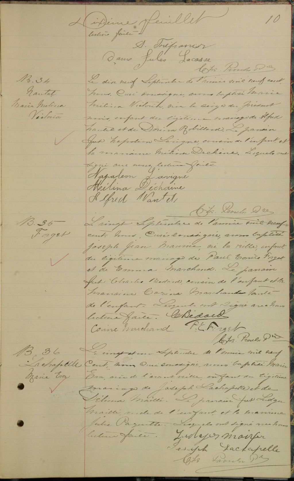 La Nativité-de-Marie-de-Labelle, 1899-1921, Archives nationales à Montréal, Fonds Cour supérieure. District judiciaire de Labelle. État civil, (06M,CE610,S20).