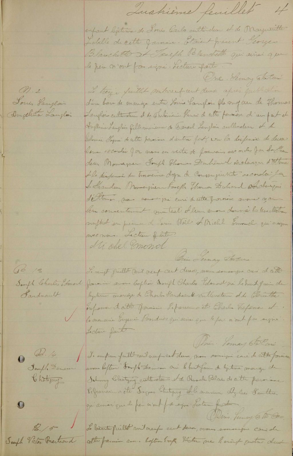 Saint-Nom-de-Marie, 1895-1921, Archives nationales à Montréal, Fonds Cour supérieure. District judiciaire de Labelle. État civil, (06M,CE610,S4).
