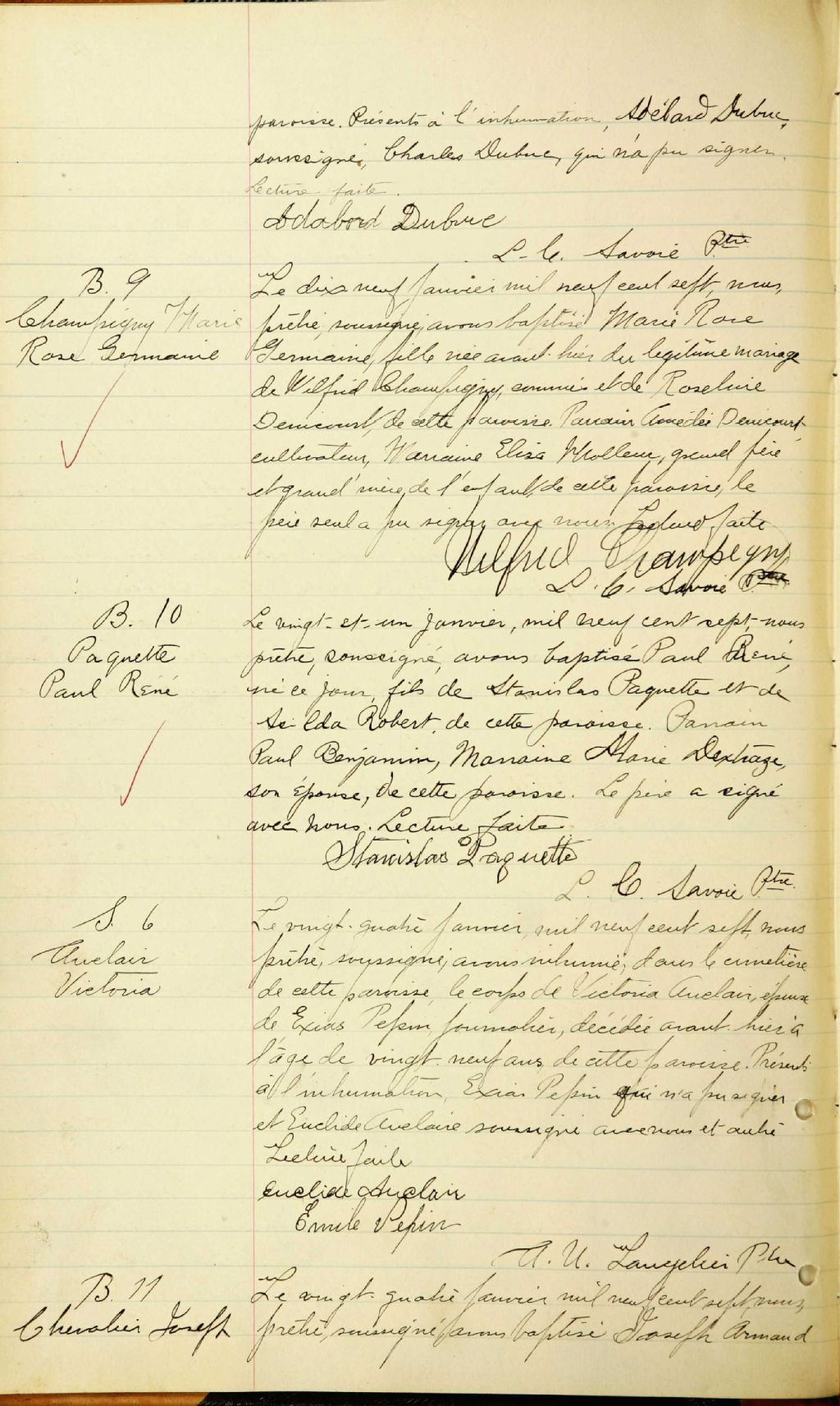 Saint-Romuald-de-Farnham, 1900-1921, Archives nationales à Montréal, Fonds Cour supérieure. District judiciaire de Bedford. État civil, (06M,CE611,S10).