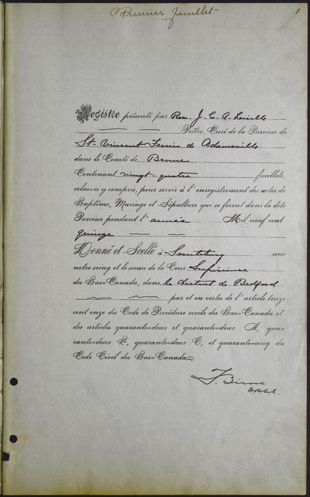 Saint-Vincent-Ferrier, 1900-1921, Archives nationales à Montréal, Fonds Cour supérieure. District judiciaire de Bedford. État civil, (06M,CE611,S1).