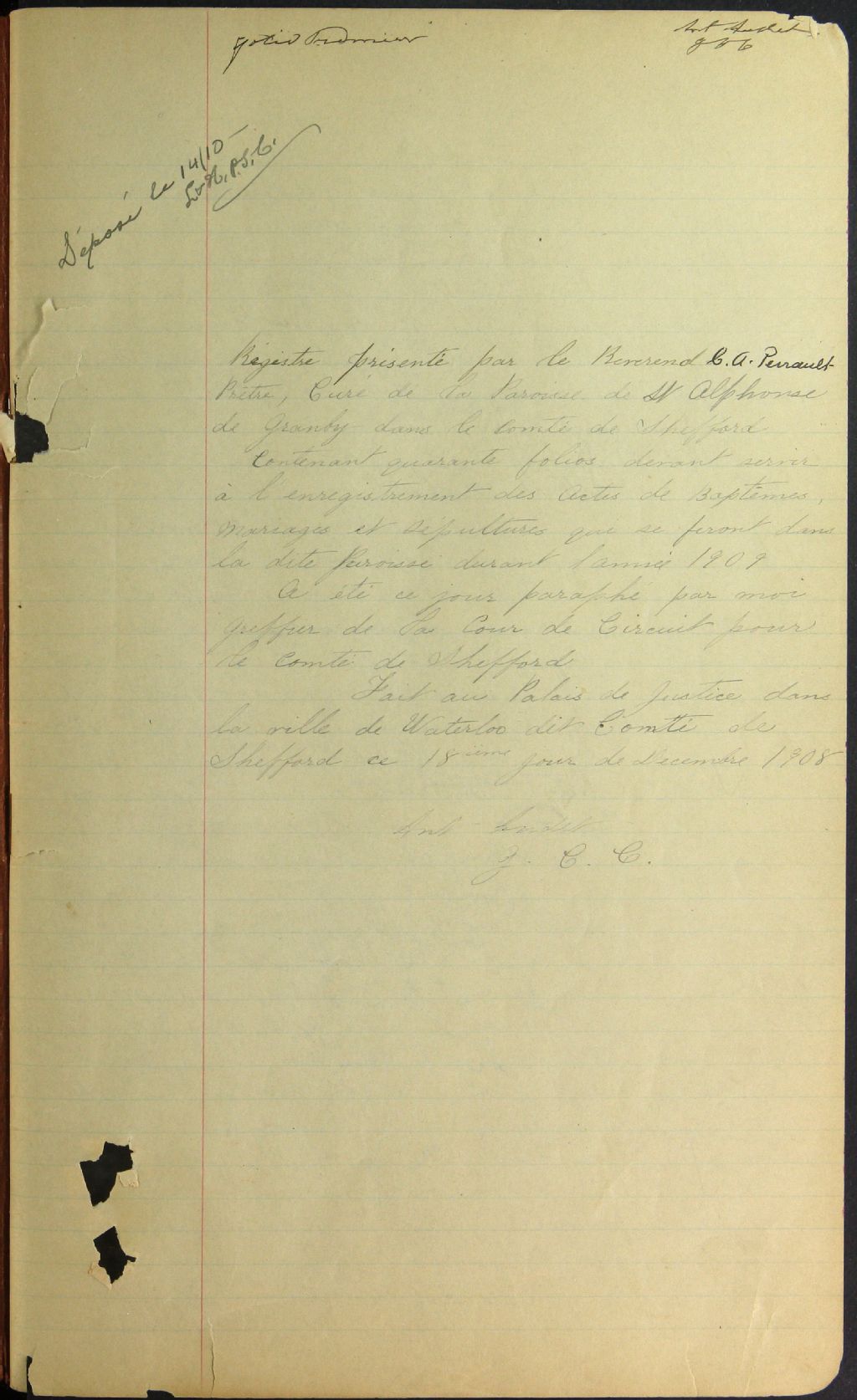 Saint-Alphonse-de-Granby, 1900-1921, Archives nationales à Montréal, Fonds Cour supérieure. District judiciaire de Bedford. État civil, (06M,CE611,S13).