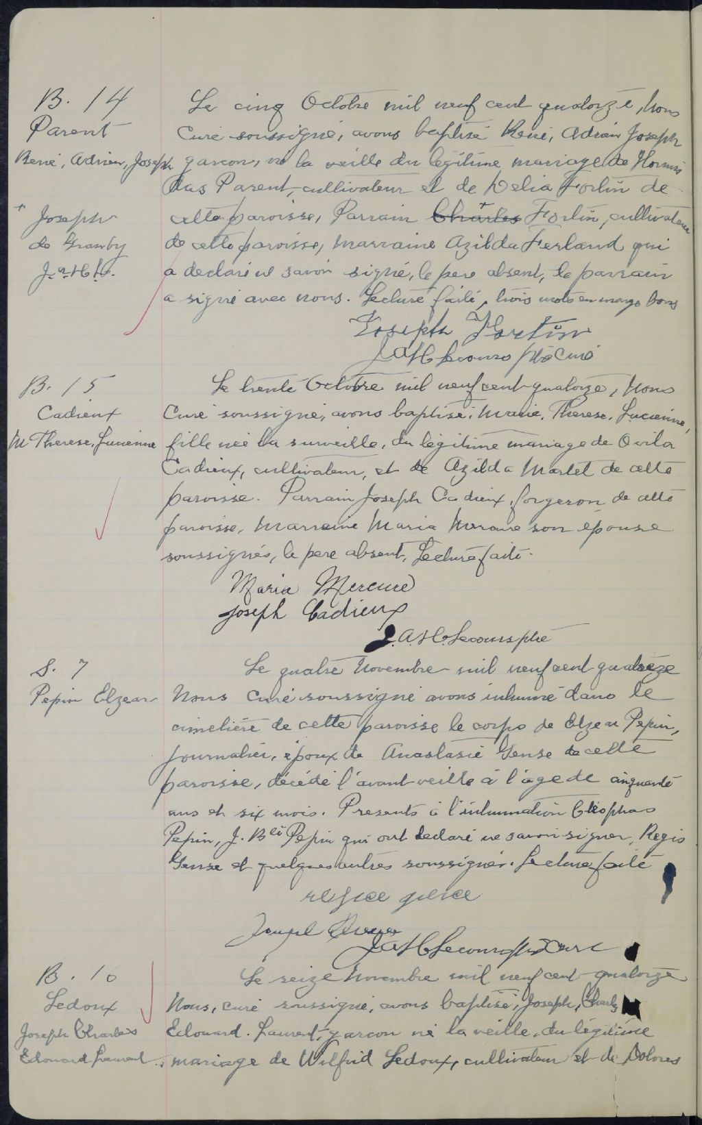 Saint-Alphonse-de-Granby, 1900-1921, Archives nationales à Montréal, Fonds Cour supérieure. District judiciaire de Bedford. État civil, (06M,CE611,S13).