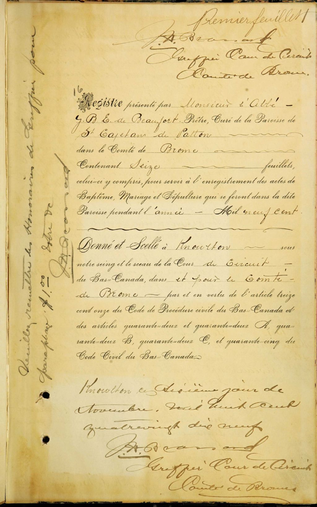 Saint-Cajetan-de-Potton, 1900-1921, Archives nationales à Montréal, Fonds Cour supérieure. District judiciaire de Bedford. État civil, (06M,CE611,S15).