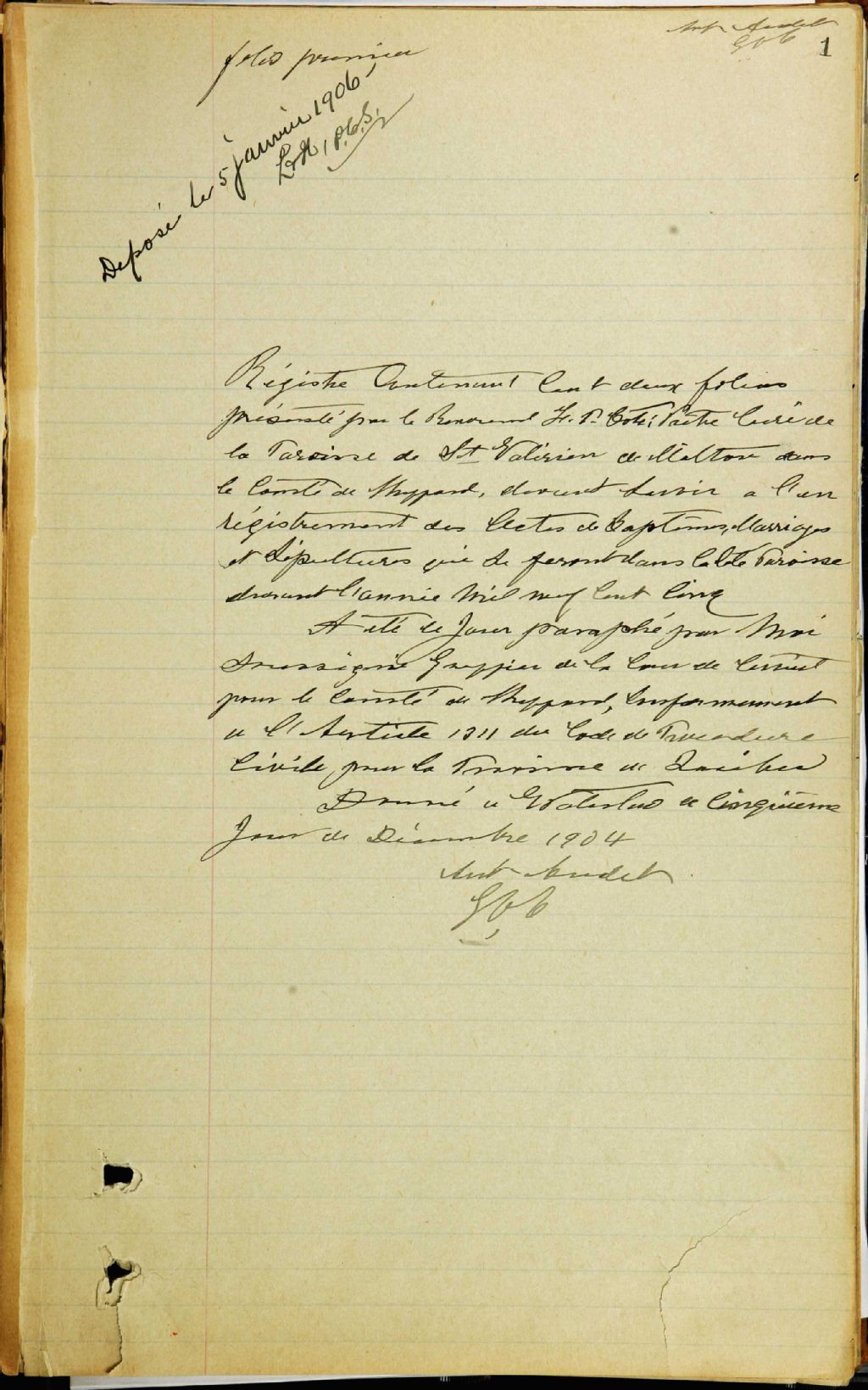 Saint-Valérien-de-Milton, 1900-1921, Archives nationales à Montréal, Fonds Cour supérieure. District judiciaire de Bedford. État civil, (06M,CE611,S17).