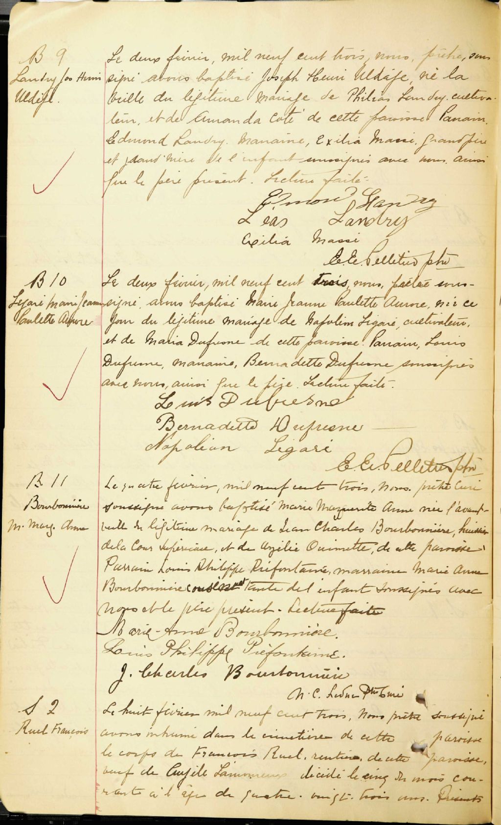 Saint-Jean-Baptiste-de-Roxton, 1900-1921, Archives nationales à Montréal, Fonds Cour supérieure. District judiciaire de Bedford. État civil, (06M,CE611,S21).