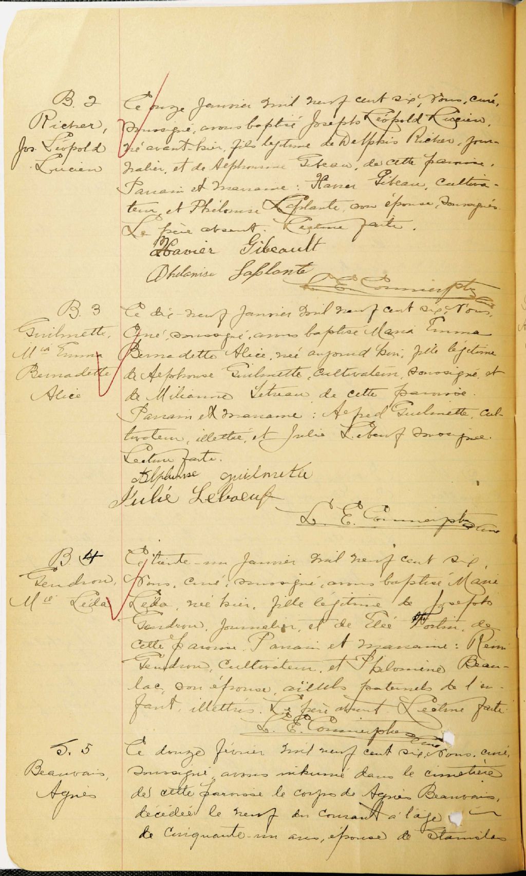 Sainte-Pudentienne, 1900-1921, Archives nationales à Montréal, Fonds Cour supérieure. District judiciaire de Bedford. État civil, (06M,CE611,S22).