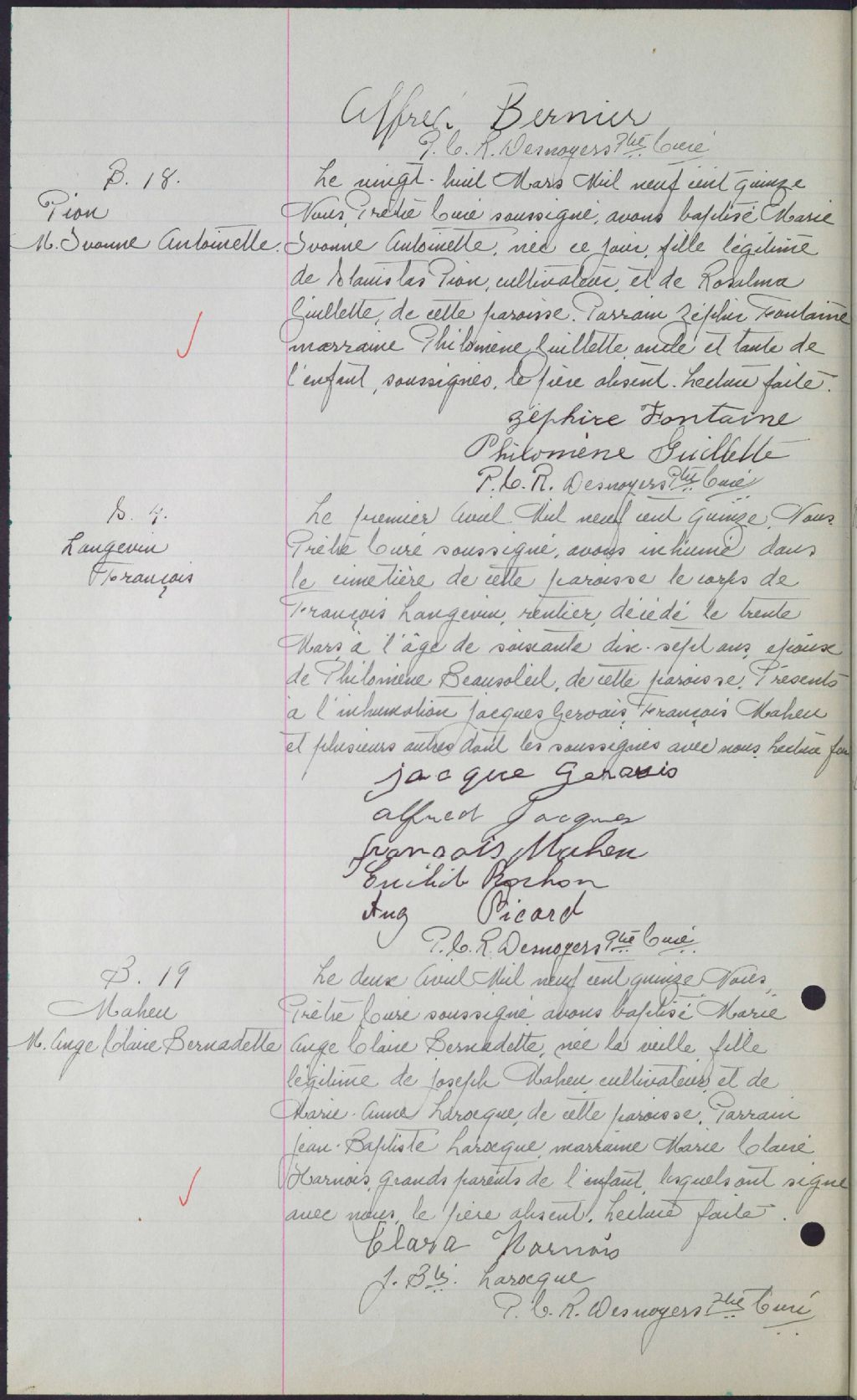 Sainte-Pudentienne, 1900-1921, Archives nationales à Montréal, Fonds Cour supérieure. District judiciaire de Bedford. État civil, (06M,CE611,S22).