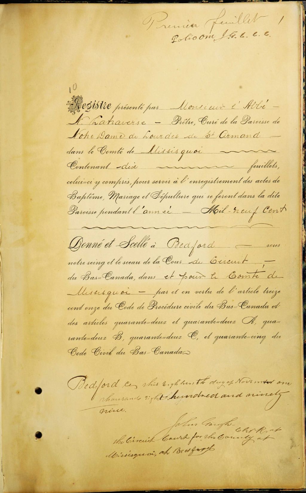 Notre-Dame-de-Lourdes, 1900-1921, Archives nationales à Montréal, Fonds Cour supérieure. District judiciaire de Bedford. État civil, (06M,CE611,S23).