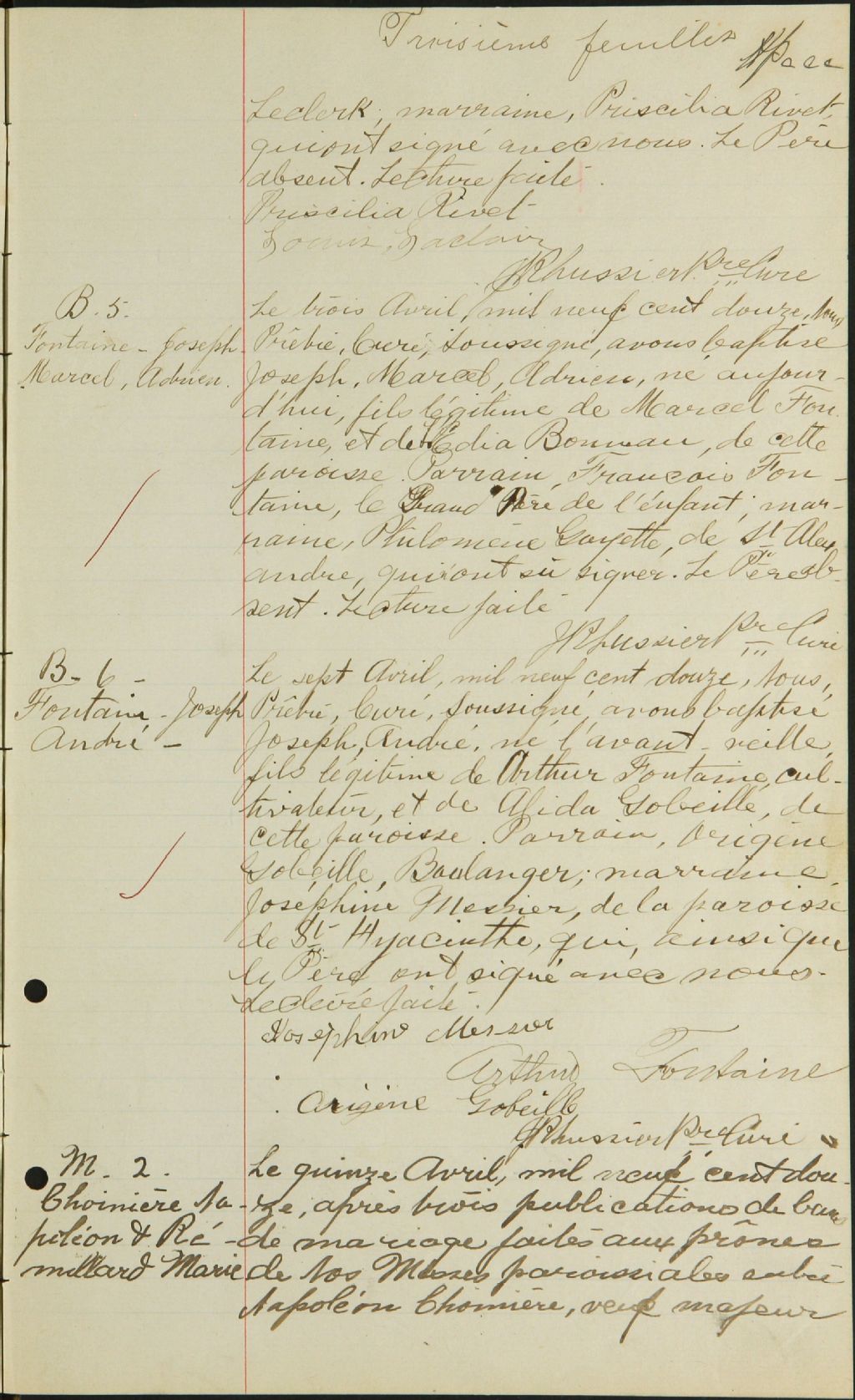 Saint-Ignace, 1900-1921, Archives nationales à Montréal, Fonds Cour supérieure. District judiciaire de Bedford. État civil, (06M,CE611,S25).