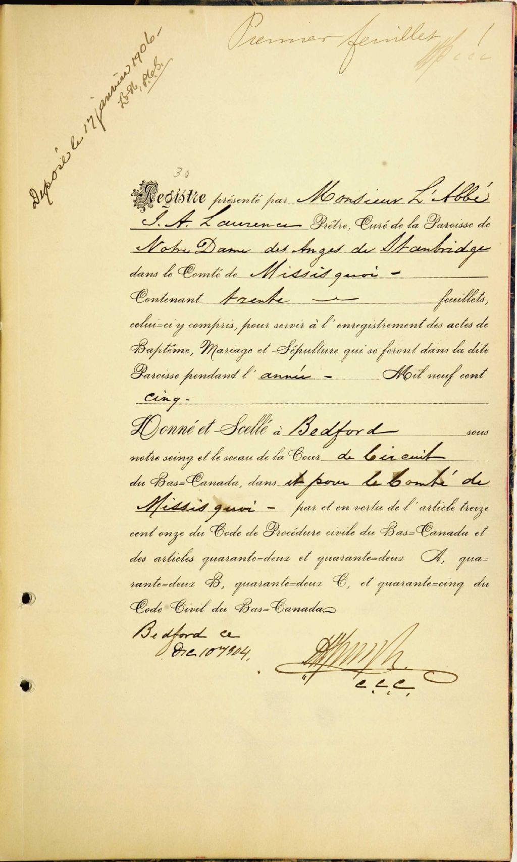 Notre-Dame-des-Anges-de-Stanbridge, 1900-1921, Archives nationales à Montréal, Fonds Cour supérieure. District judiciaire de Bedford. État civil, (06M,CE611,S26).