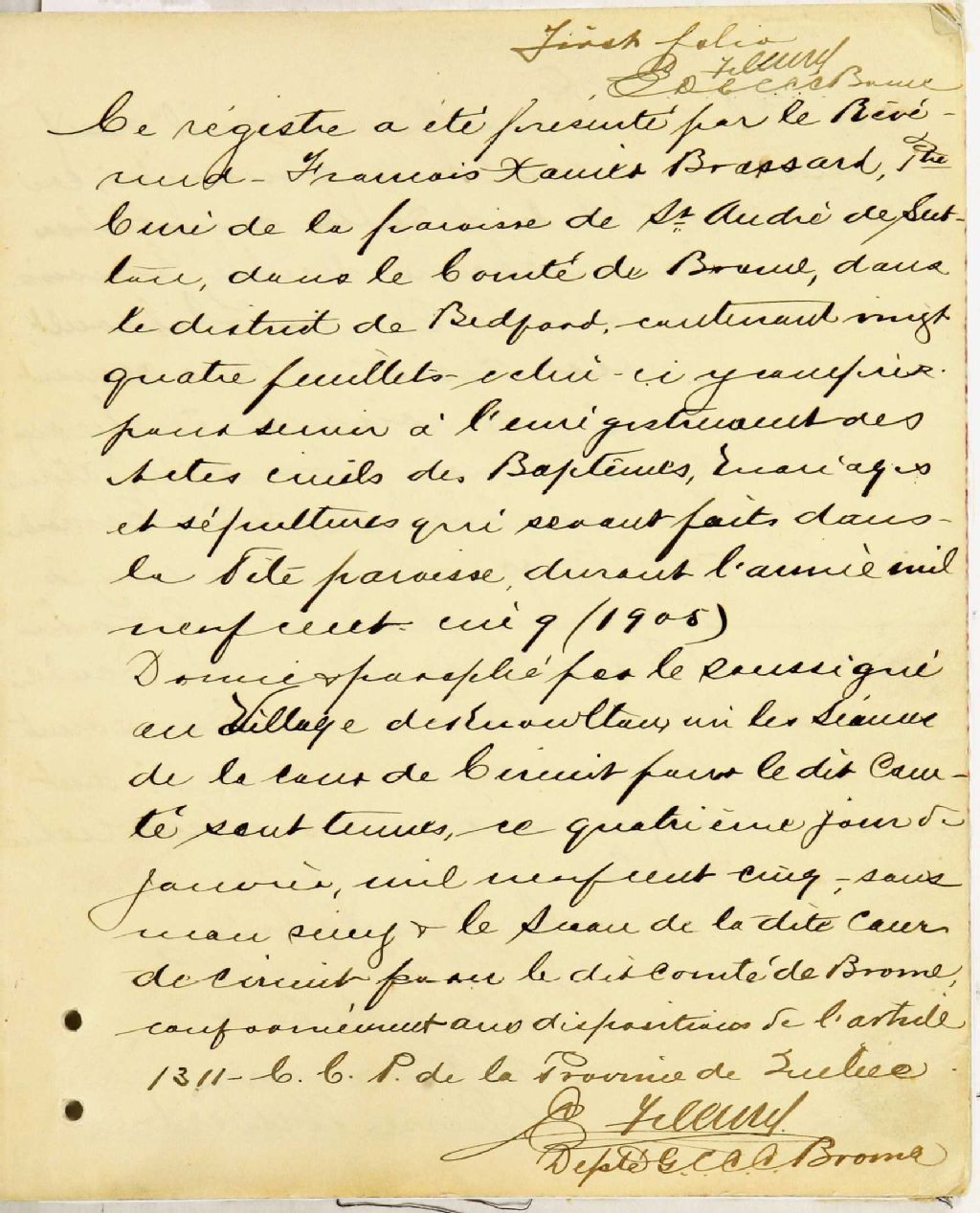 Saint-André-de-Sutton, 1900-1921, Archives nationales à Montréal, Fonds Cour supérieure. District judiciaire de Bedford. État civil, (06M,CE611,S28).