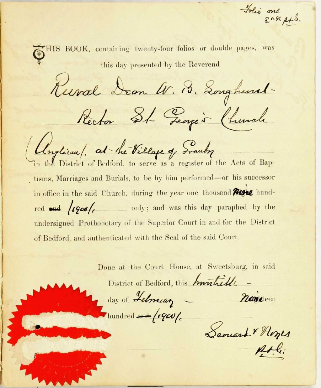 St. George Anglican Church of Granby, 1900-1921, Archives nationales à Montréal, Fonds Cour supérieure. District judiciaire de Bedford. État civil, (06M,CE611,S40).