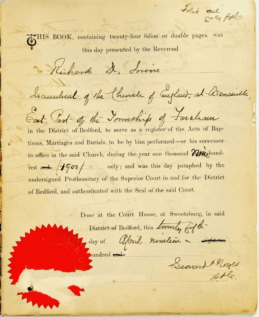 St. George Anglican Church of Adamsville, 1900-1919, Archives nationales à Montréal, Fonds Cour supérieure. District judiciaire de Bedford. État civil, (06M,CE611,S55).