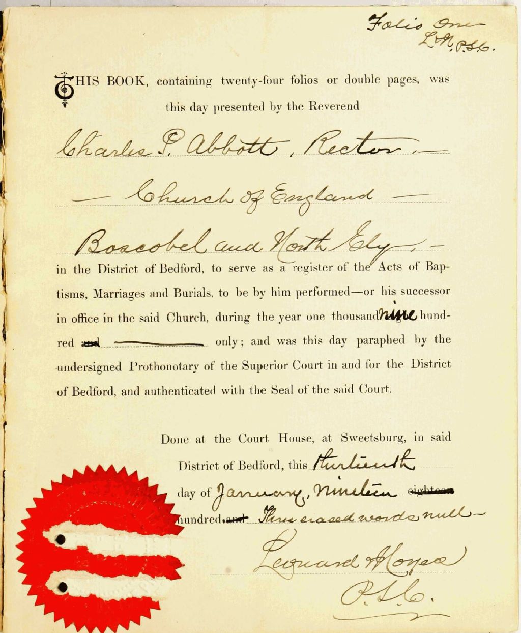 St. John the Divine Anglican Church, 1900-1921, Archives nationales à Montréal, Fonds Cour supérieure. District judiciaire de Bedford. État civil, (06M,CE611,S59).