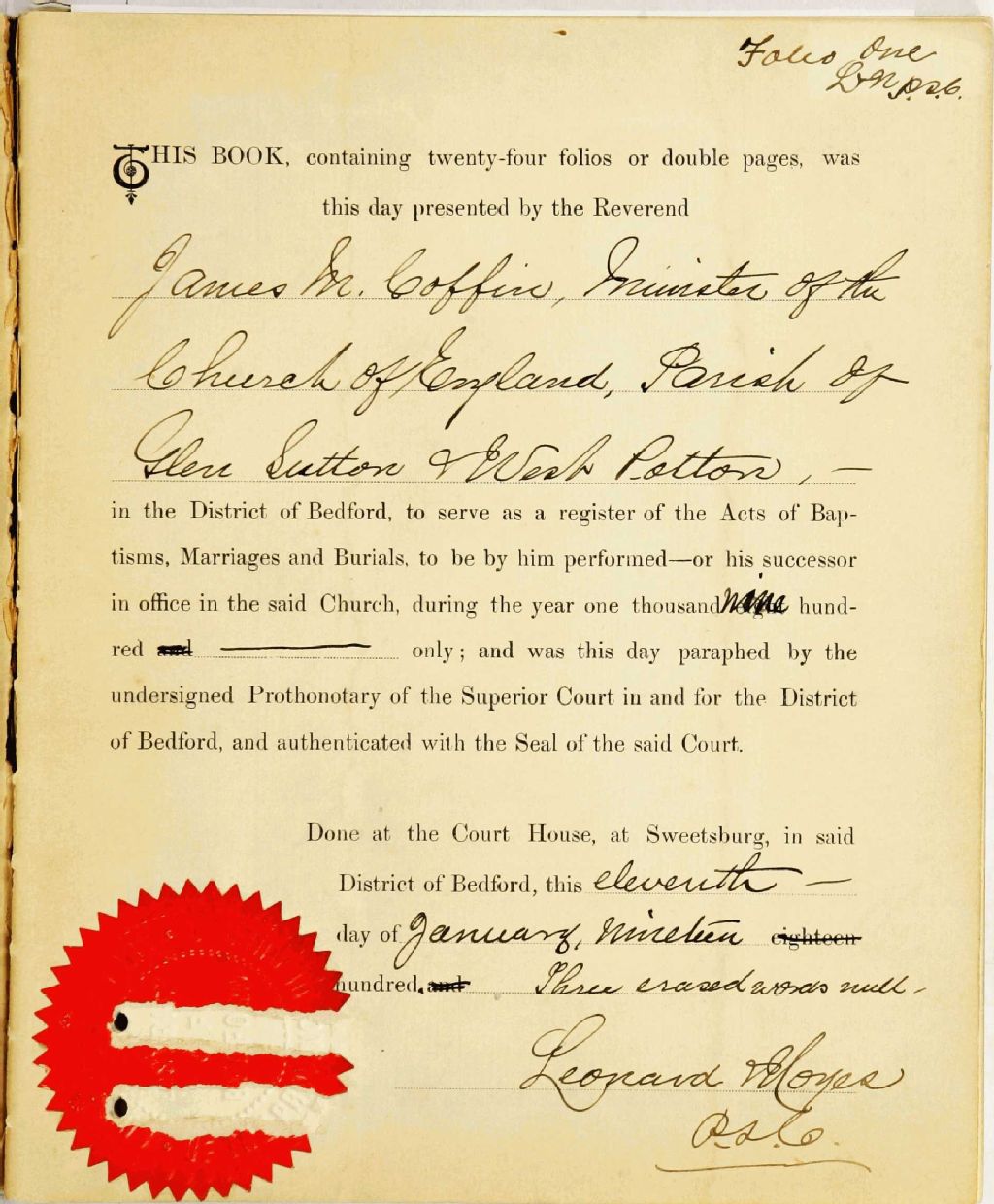 Sutton Good Shepherd Anglican Church, 1900-1914, 1916-1921, Archives nationales à Montréal, Fonds Cour supérieure. District judiciaire de Bedford. État civil, (06M,CE611,S73).