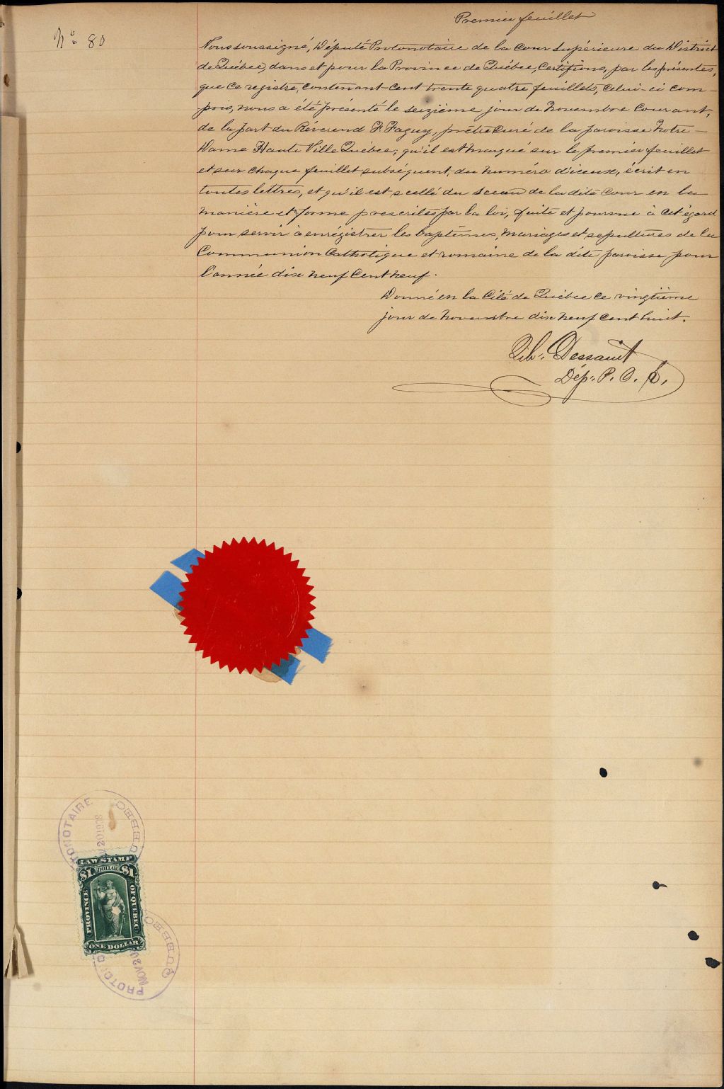 Notre-Dame-de-Québec, 1621-1922, Archives nationales à Québec, Fonds Cour supérieure. District judiciaire de Québec. État civil, (03Q,CE301,S1).