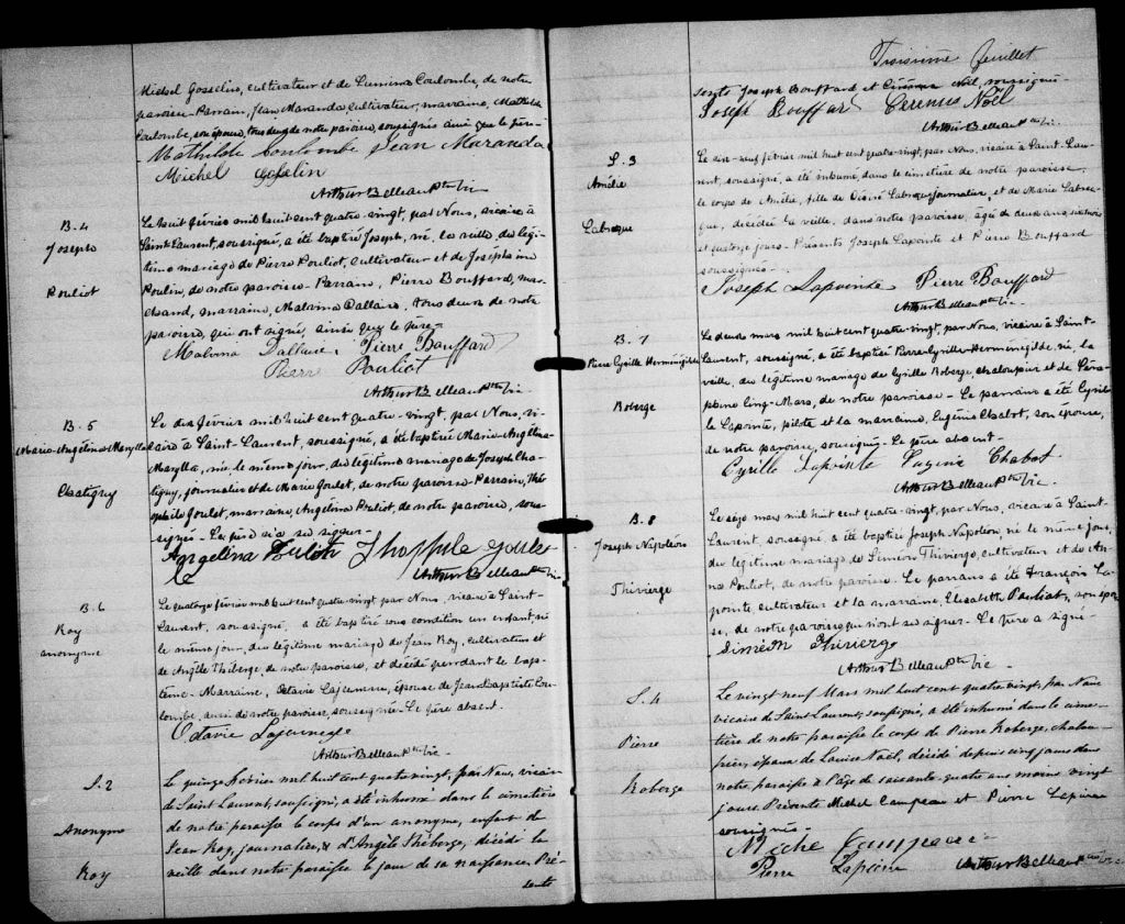 Saint-Laurent, Île d'Orléans, 1679-1922, Archives nationales à Québec, Fonds Cour supérieure. District judiciaire de Québec. État civil, (03Q,CE301,S10).