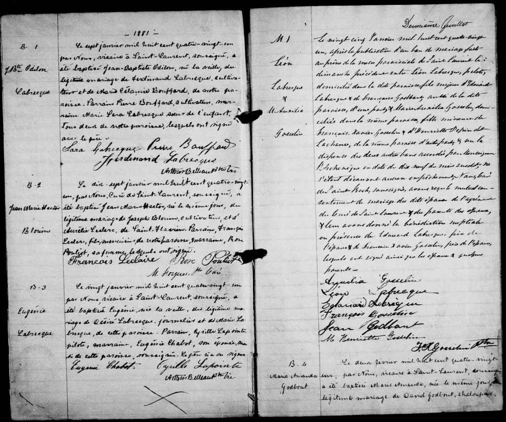 Saint-Laurent, Île d'Orléans, 1679-1922, Archives nationales à Québec, Fonds Cour supérieure. District judiciaire de Québec. État civil, (03Q,CE301,S10).