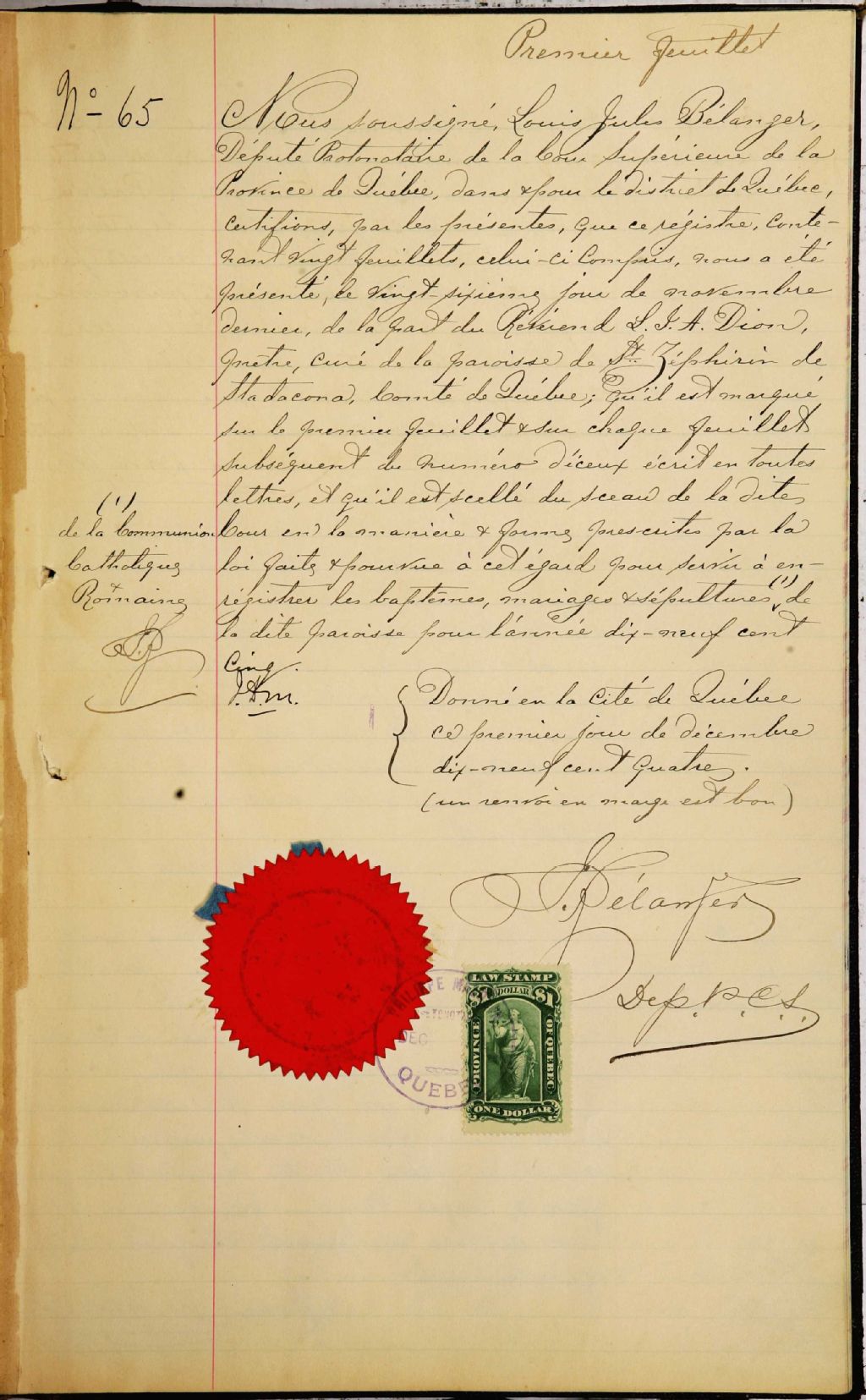 Saint-Zéphirin-de-Stadacona, 1896-1922, Archives nationales à Québec, Fonds Cour supérieure. District judiciaire de Québec. État civil, (03Q,CE301,S101).