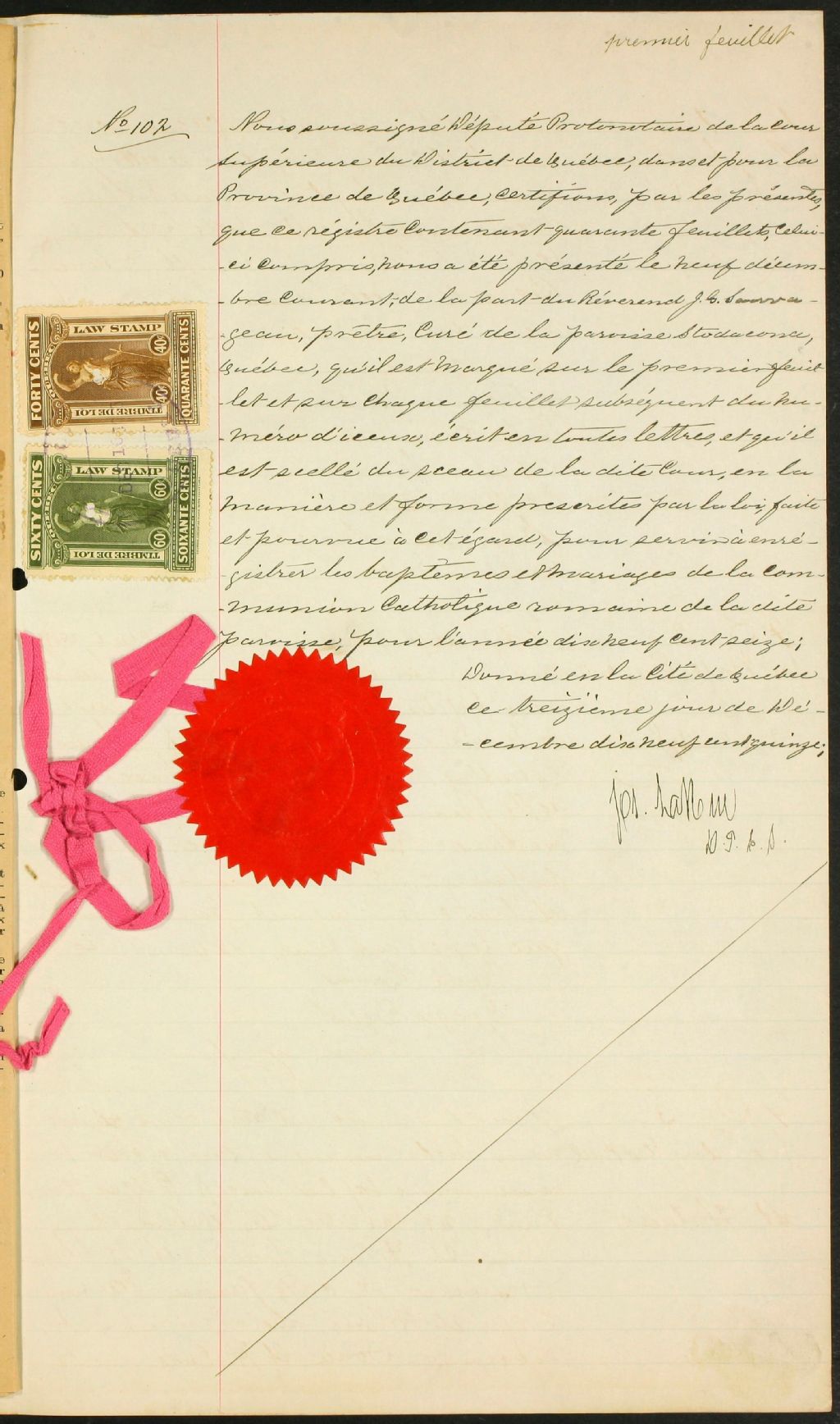 Saint-Zéphirin-de-Stadacona, 1896-1922, Archives nationales à Québec, Fonds Cour supérieure. District judiciaire de Québec. État civil, (03Q,CE301,S101).