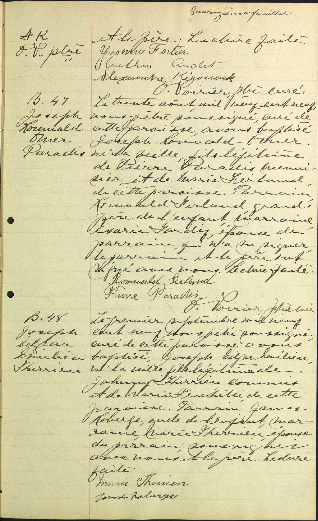 Notre-Dame-du-Perpétuel-Secours-de-Charny, 1903-1922, Archives nationales à Québec, Fonds Cour supérieure. District judiciaire de Québec. État civil, (03Q,CE301,S102).