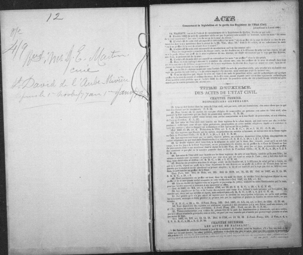 Saint-David-de-l'Aube-Rivière, 1877-1922, Archives nationales à Québec, Fonds Cour supérieure. District judiciaire de Québec. État civil, (03Q,CE301,S105).