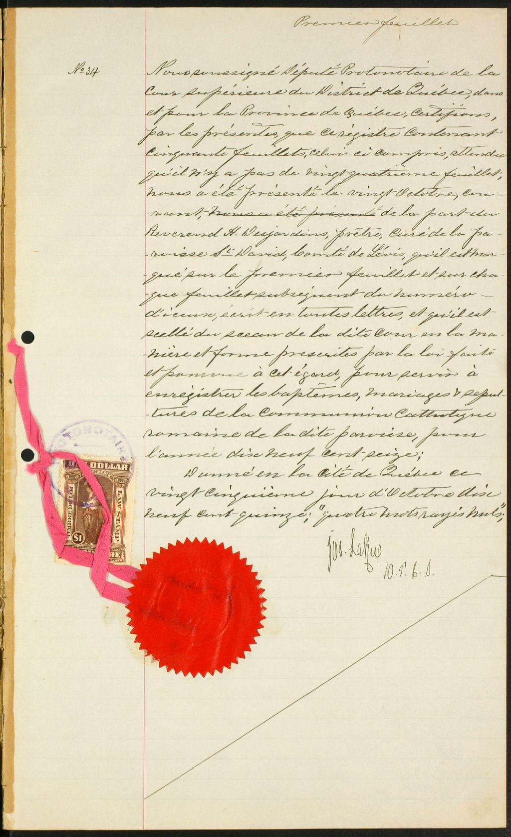 Saint-David-de-l'Aube-Rivière, 1877-1922, Archives nationales à Québec, Fonds Cour supérieure. District judiciaire de Québec. État civil, (03Q,CE301,S105).