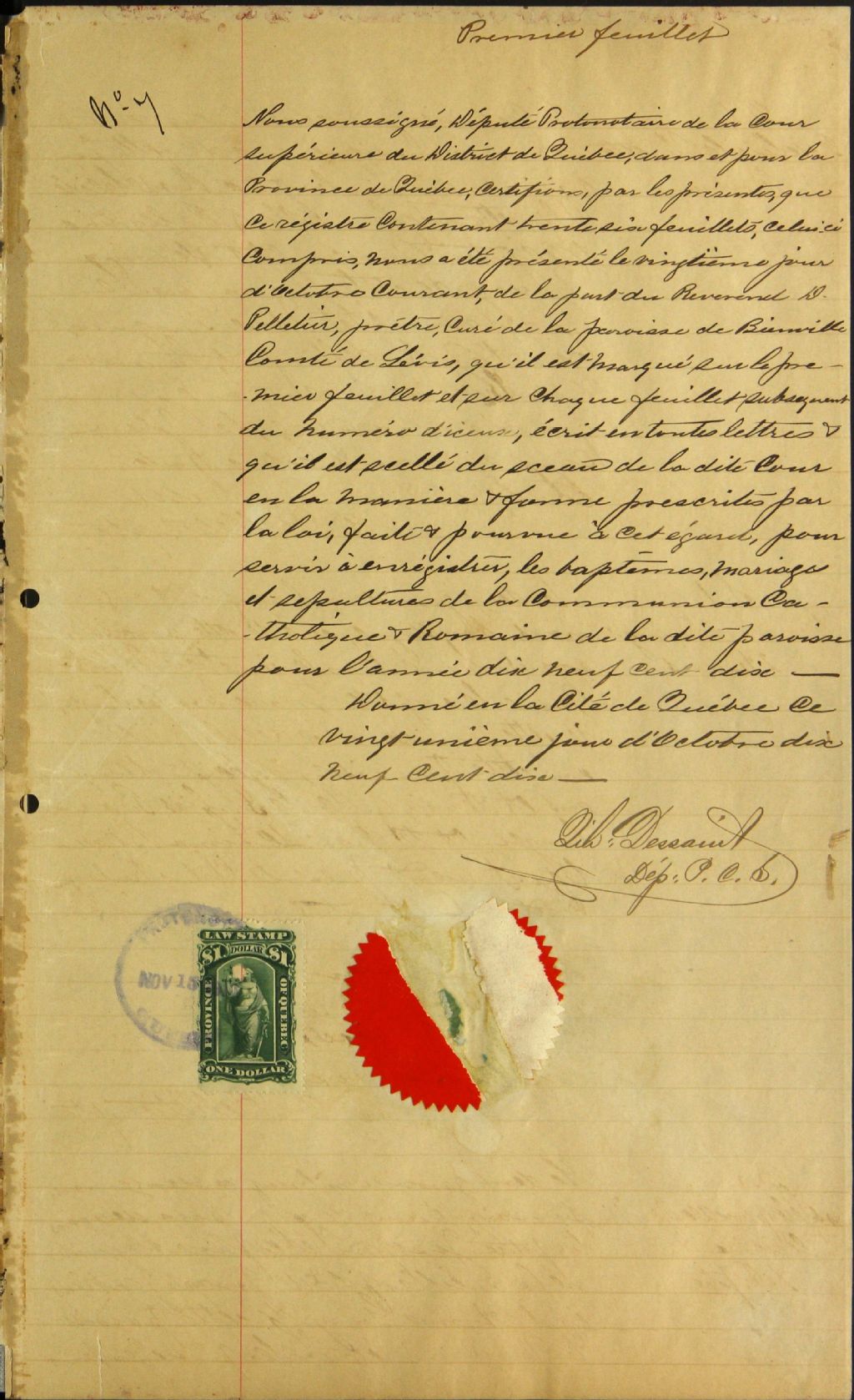 Saint-Antoine-de-Bienville, 1896-1922, Archives nationales à Québec, Fonds Cour supérieure. District judiciaire de Québec. État civil, (03Q,CE301,S107).