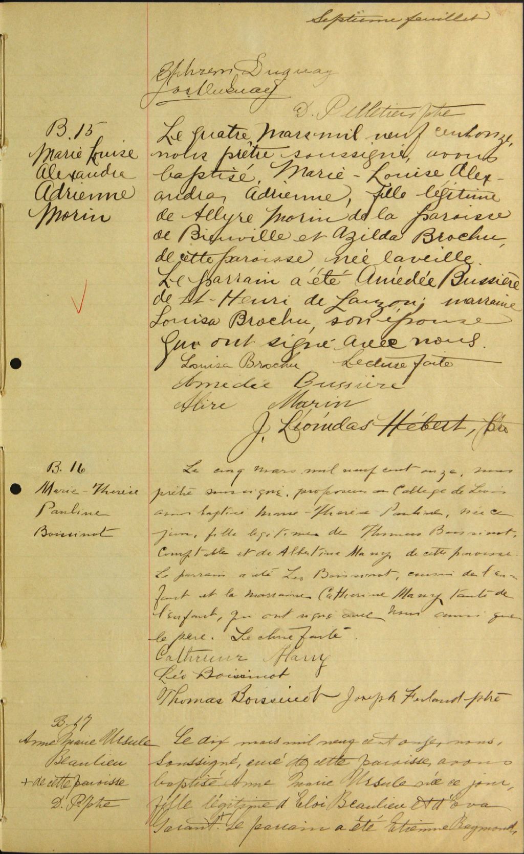 Saint-Antoine-de-Bienville, 1896-1922, Archives nationales à Québec, Fonds Cour supérieure. District judiciaire de Québec. État civil, (03Q,CE301,S107).