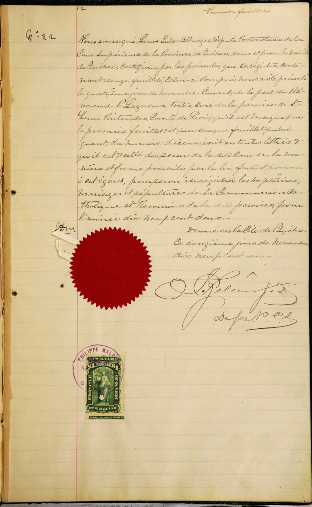 Saint-Louis-de-Pintendre, 1899-1922, Archives nationales à Québec, Fonds Cour supérieure. District judiciaire de Québec. État civil, (03Q,CE301,S109).
