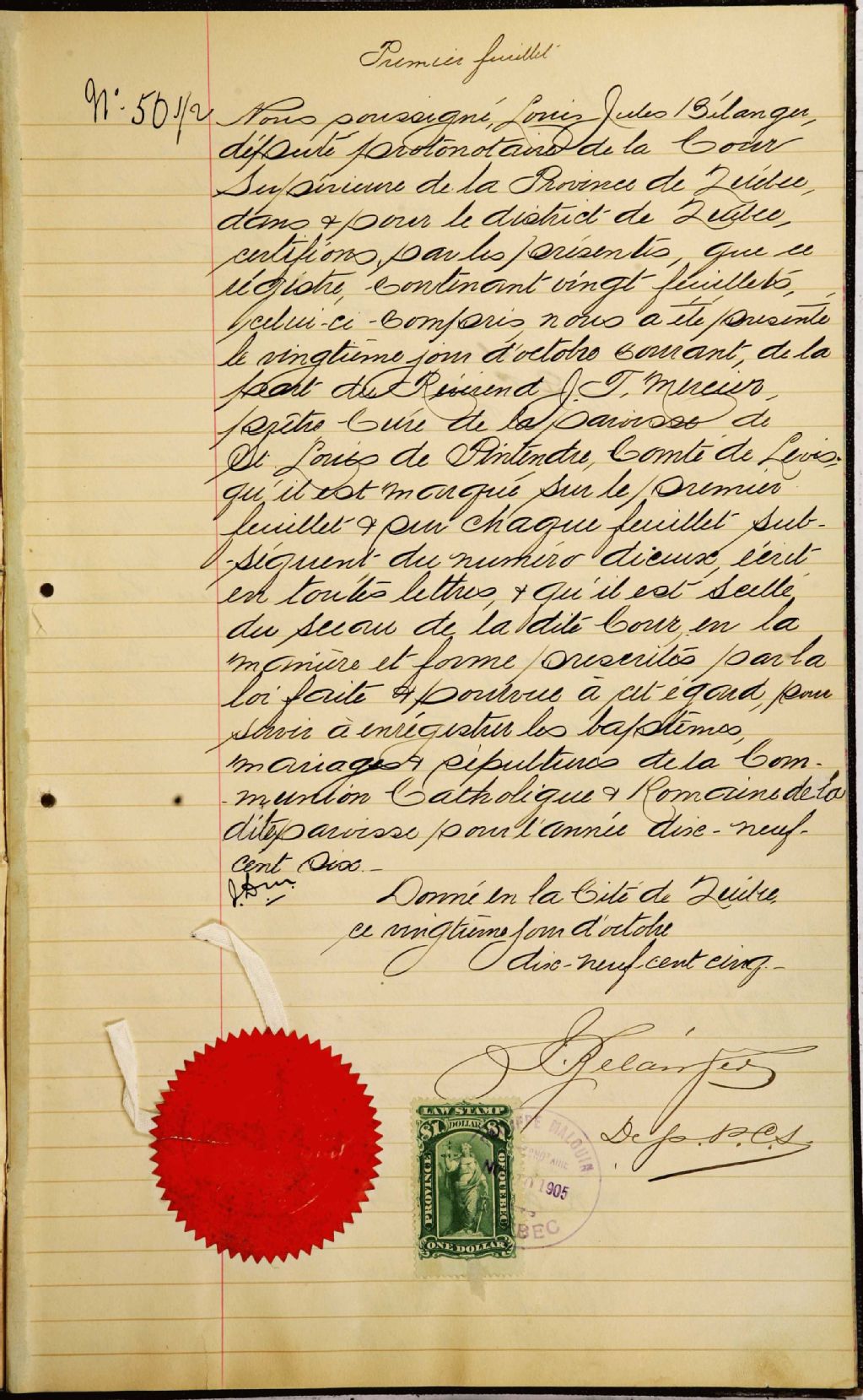 Saint-Louis-de-Pintendre, 1899-1922, Archives nationales à Québec, Fonds Cour supérieure. District judiciaire de Québec. État civil, (03Q,CE301,S109).