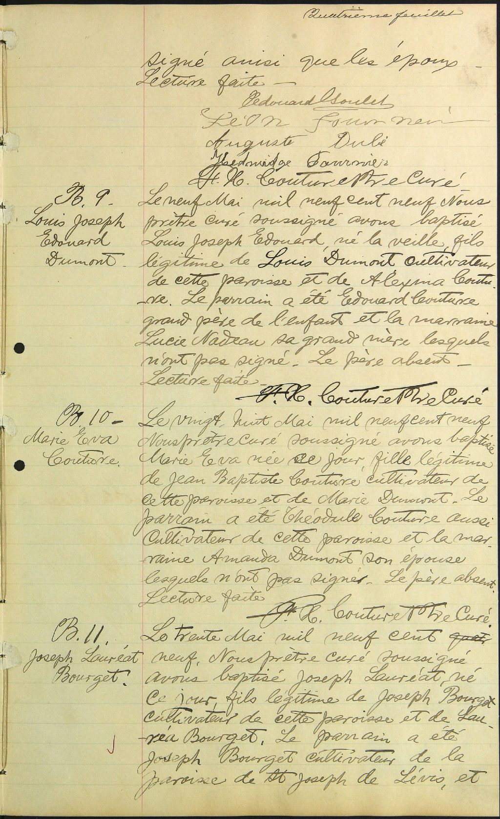 Saint-Louis-de-Pintendre, 1899-1922, Archives nationales à Québec, Fonds Cour supérieure. District judiciaire de Québec. État civil, (03Q,CE301,S109).