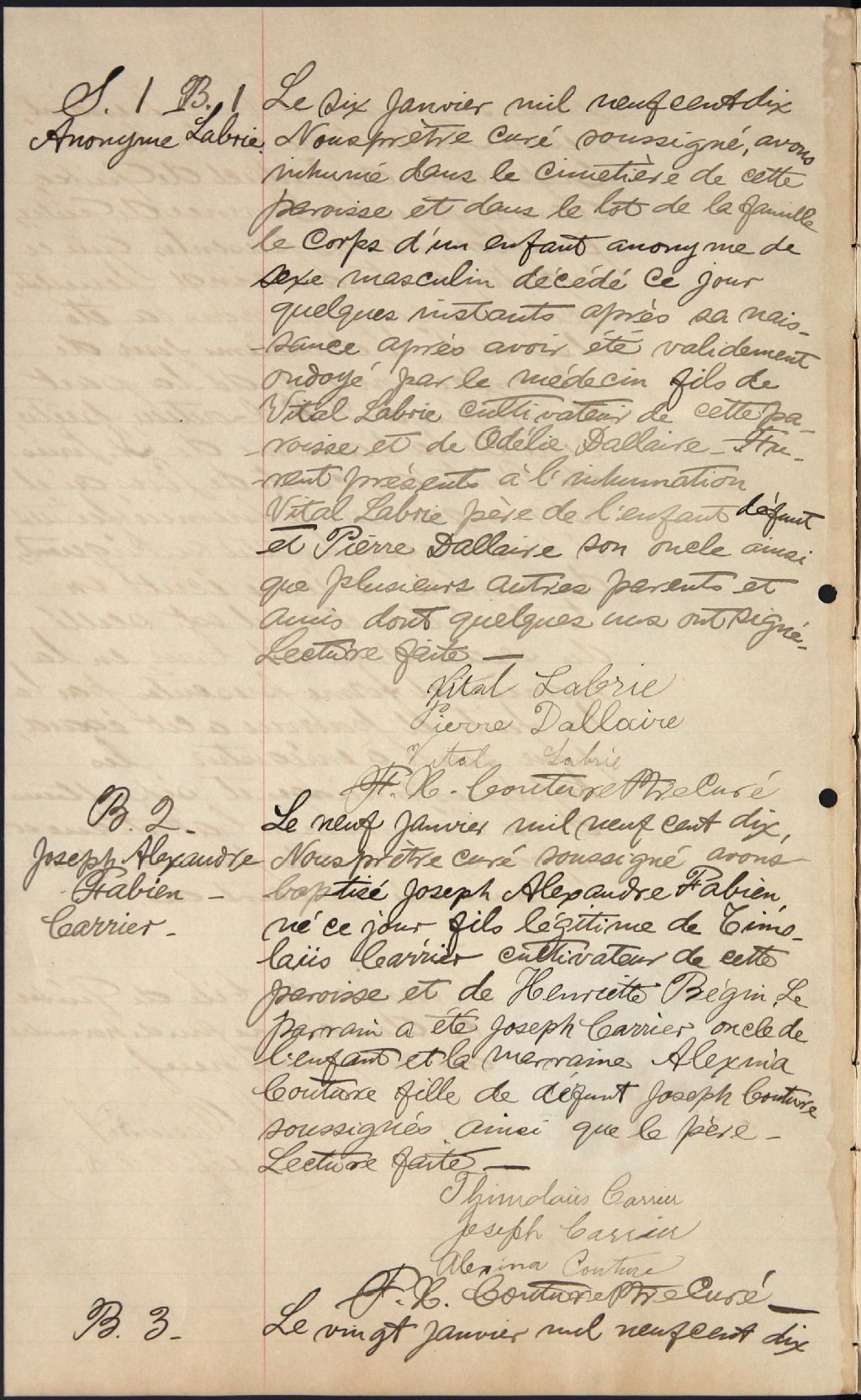 Saint-Louis-de-Pintendre, 1899-1922, Archives nationales à Québec, Fonds Cour supérieure. District judiciaire de Québec. État civil, (03Q,CE301,S109).
