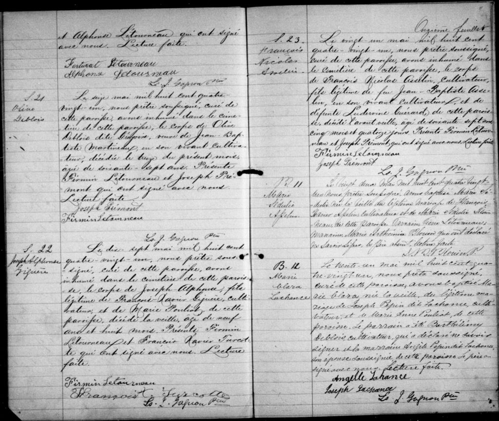 Sainte-Famille, Île d'Orléans, 1666-1922, Archives nationales à Québec, Fonds Cour supérieure. District judiciaire de Québec. État civil, (03Q,CE301,S11).