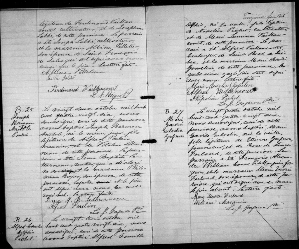 Sainte-Famille, Île d'Orléans, 1666-1922, Archives nationales à Québec, Fonds Cour supérieure. District judiciaire de Québec. État civil, (03Q,CE301,S11).