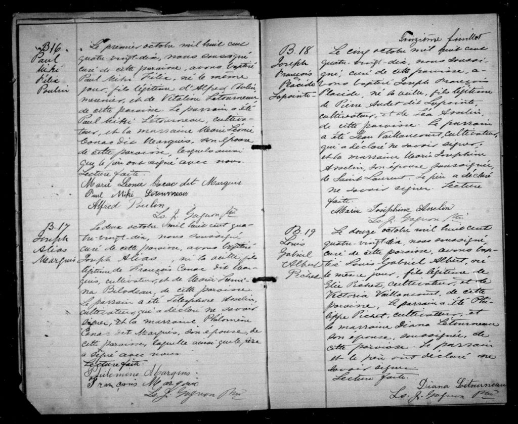 Sainte-Famille, Île d'Orléans, 1666-1922, Archives nationales à Québec, Fonds Cour supérieure. District judiciaire de Québec. État civil, (03Q,CE301,S11).