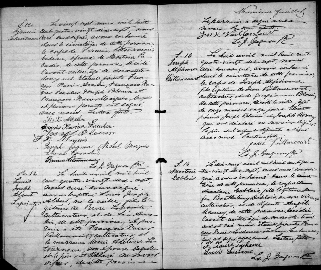 Sainte-Famille, Île d'Orléans, 1666-1922, Archives nationales à Québec, Fonds Cour supérieure. District judiciaire de Québec. État civil, (03Q,CE301,S11).