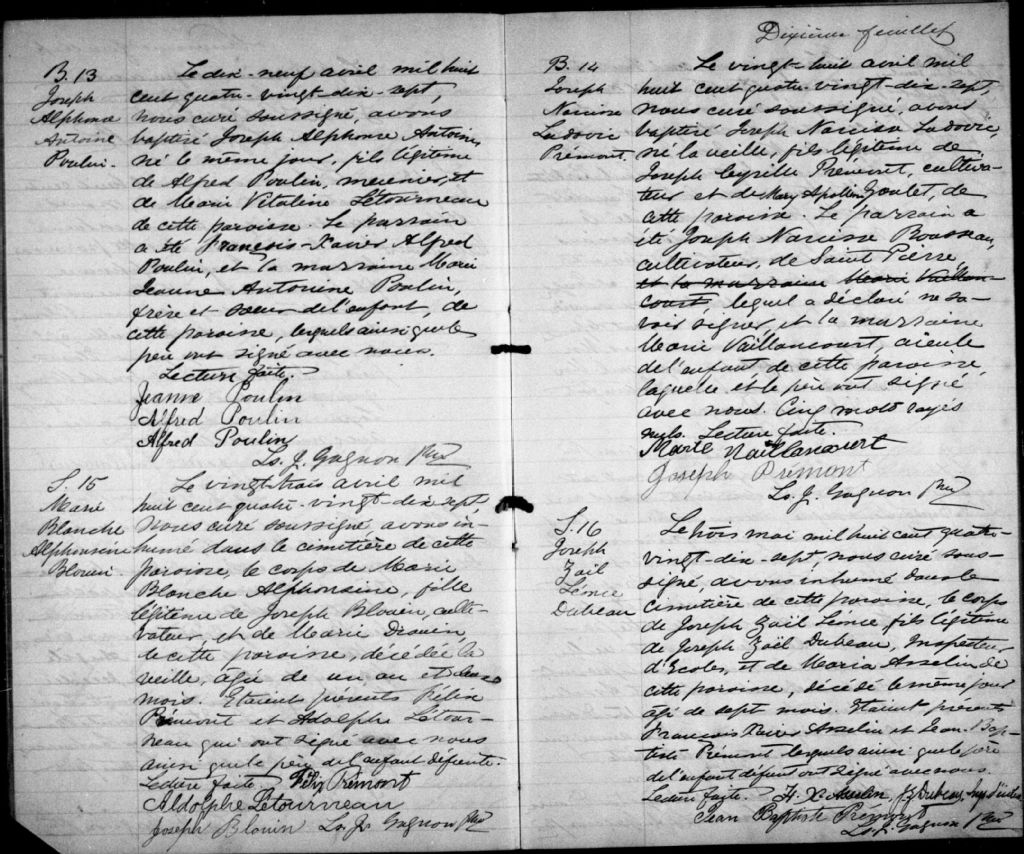 Sainte-Famille, Île d'Orléans, 1666-1922, Archives nationales à Québec, Fonds Cour supérieure. District judiciaire de Québec. État civil, (03Q,CE301,S11).