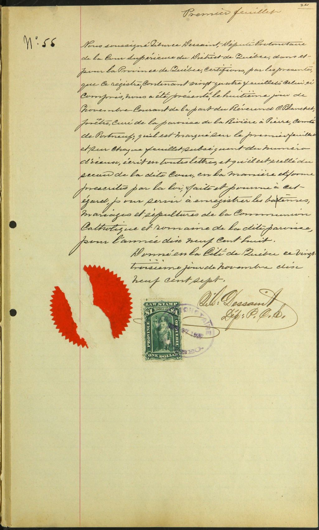 Saint-Bernardin-de-Sienne, 1890-1922, Archives nationales à Québec, Fonds Cour supérieure. District judiciaire de Québec. État civil, (03Q,CE301,S110).