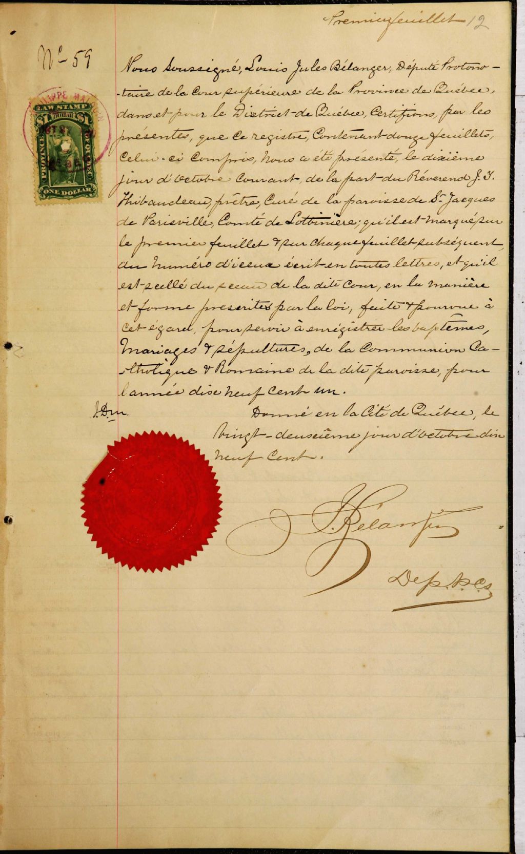 Saint-Jacques-de-Parisville, 1900-1922, Archives nationales à Québec, Fonds Cour supérieure. District judiciaire de Québec. État civil, (03Q,CE301,S111).